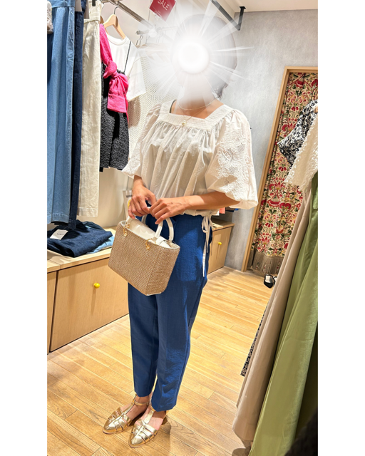 また骨格はウェーブタイプなので、腰回りがスッキリと見えるものを選び、重心位置を高くすることでスタイルアップされていました。